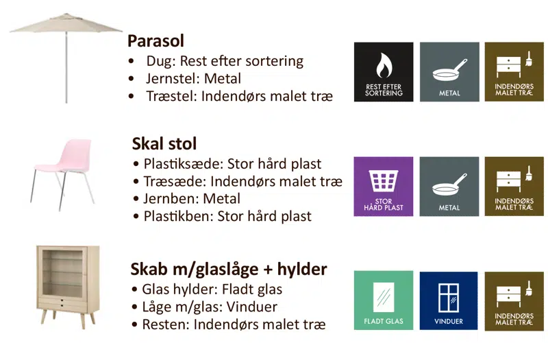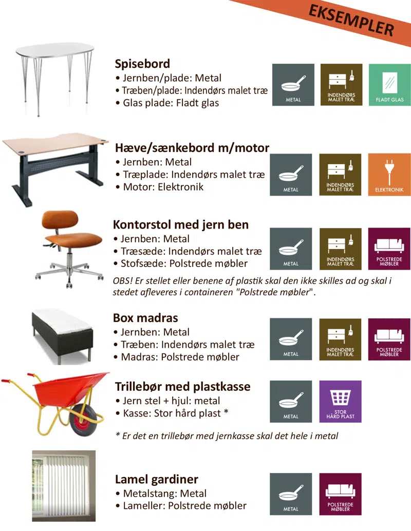 Herunder finder du eksempler på, hvad du skal skille ad.
