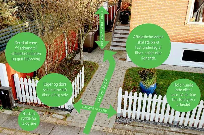 - Højst 20 meter fra vejen til beholderen