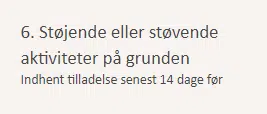 Dette punkt er til hvis man river en bygning ned, da det støver og støjer.