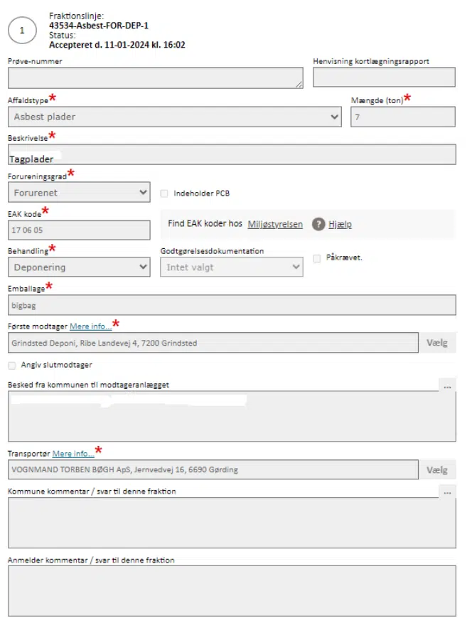 Dette punkt er til det anlæg der modtager dit anmeldte affald. Dette punkt springer du over.