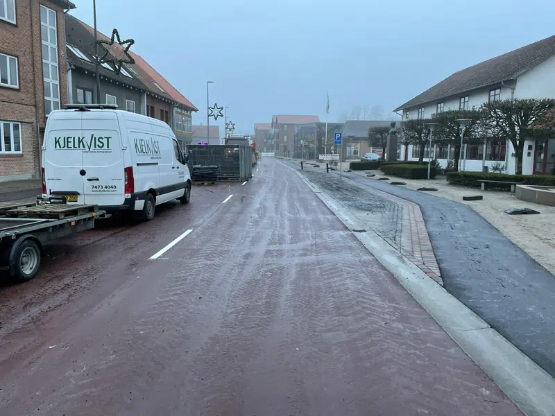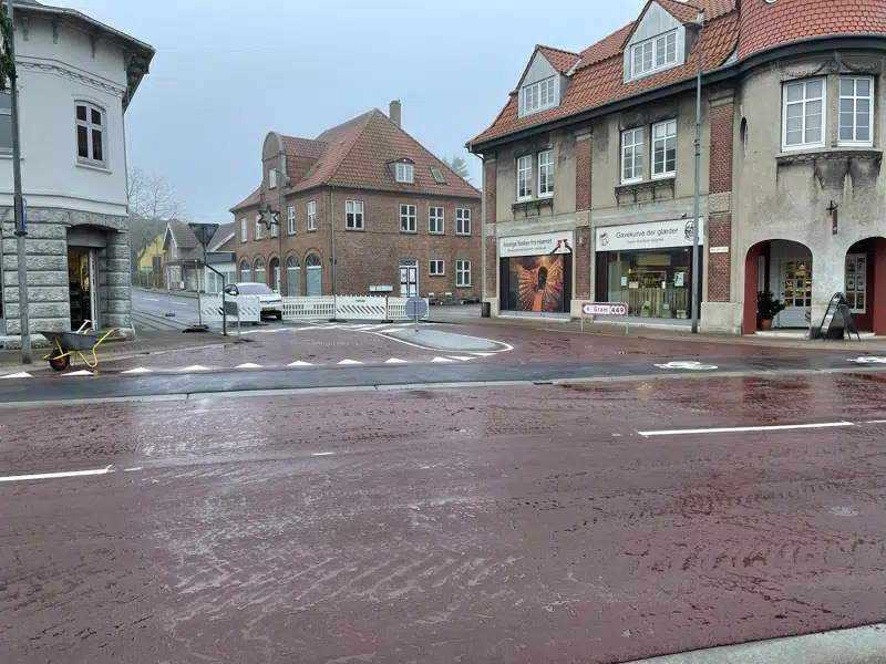 Ombygningen af krydset i Rødding midtby er afsluttet. De udtjente belægningssten på kørebanen gennem krydset er udskiftet med rødt asfalt, og cykelstien er blevet mere synlig. Samtidig er arealet med chaussesten i midten af vejen fjernet. Krydsombygningen skal blandt andet medvirke til at oversigtsforholdene fra Kongevej og Sønderalle forbedres.