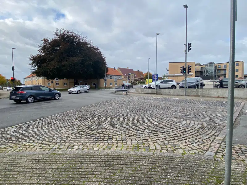 Belægningen i lyskrydset Søndergade / Plantagevej i Vejen skal renoveres. Arbejdet udføres i ugerne 44-47. De gamle chaussesten skiftes ud med asfalt i lyskrydset. Samtidig etablerer vi fire nye rendestensbrønde og maler fodgængerfeltet op.