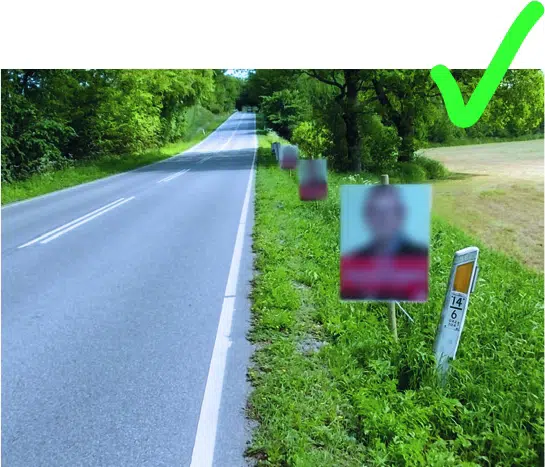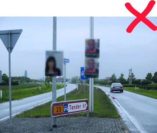 - Plakater må ikke hænge nærmere end 10 meter fra vejkryds og rundkørsler.