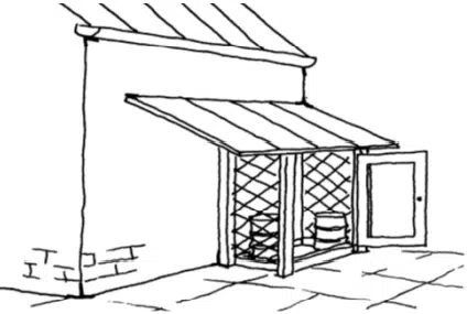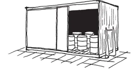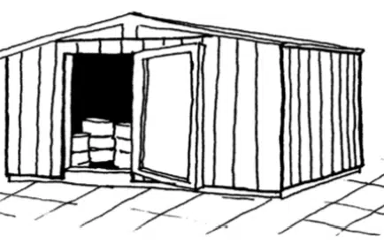 Figur 4: Et lukket skur med tæt bund uden afløb og tæt opkant. Skuret kan aflåses.