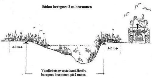 Mange vandløb og søer har 2 m bræmmer. I bræmmen må der ikke dyrkes, jordbehandles, plantes eller etableres hegn og bygværker.