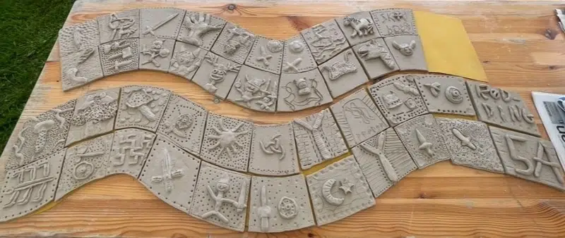 Nogle af de ubrændte keramikkakler - se det færdige resultat i Jels 15. juni.