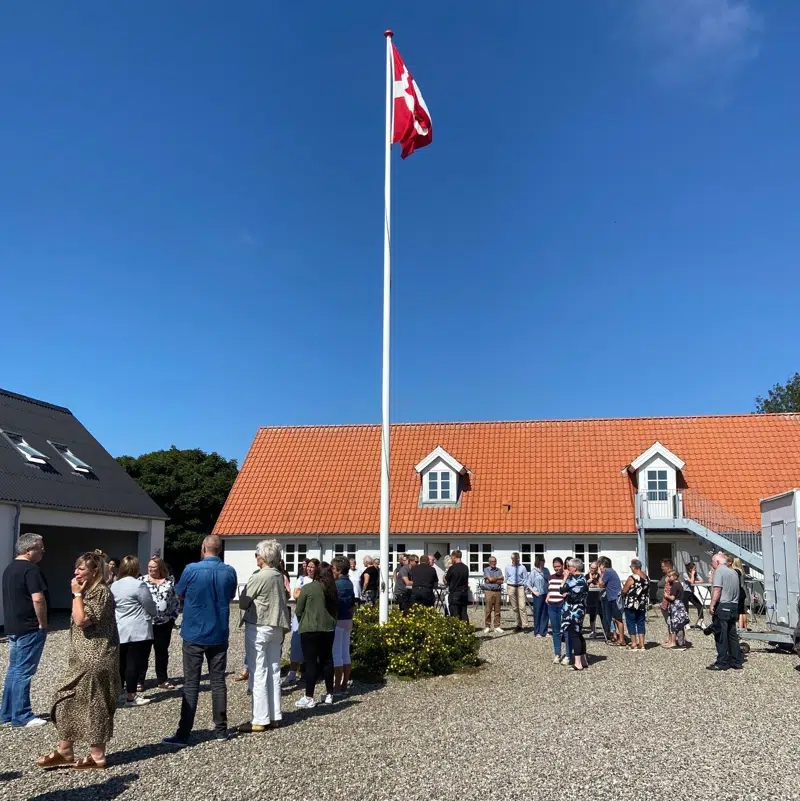 Ca. 60 personer havde lagt vejen forbi Højgaardhus til dagens indvielse, hvor der var taler ved Udvalgsformand for Skoler og børn Claus Kulmbach og næstformand Elin Winther.
